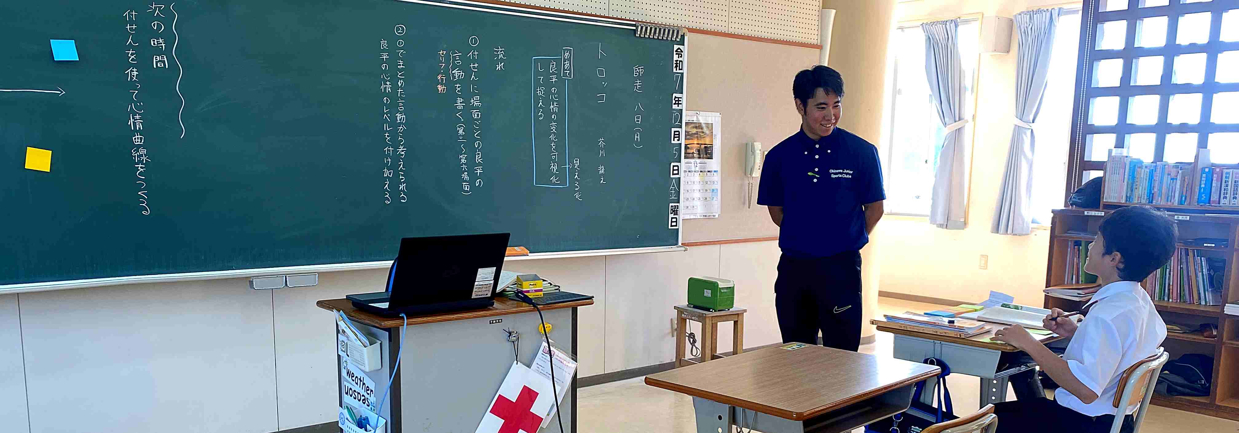 一人1授業がありました。今回は、岡田先生が中学1年生の国語の授業を行いました。芥川龍之介作品の「トロッコ」を教材に、情景描写を手掛かりに主人公の心情の変化を考える生徒の姿が見られました。