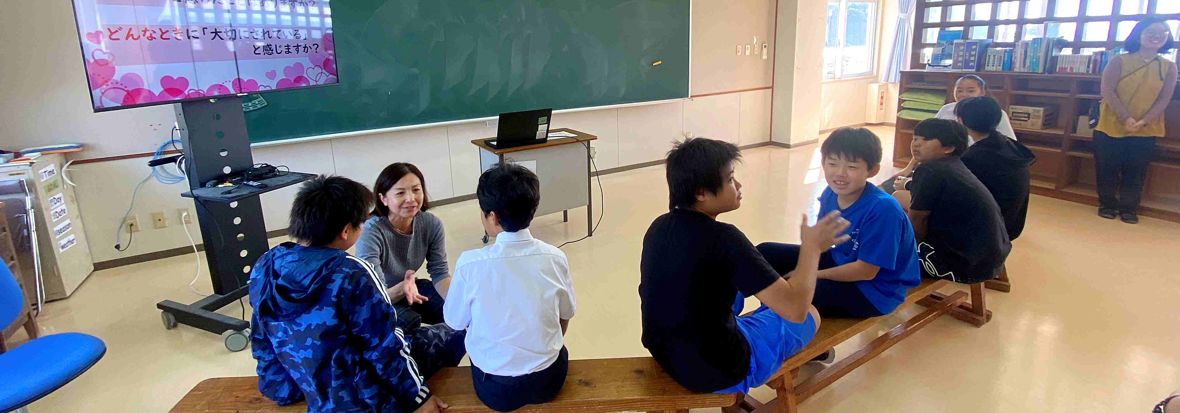 一人1授業で小学部の永山先生が、道徳の授業「かぼちゃのつる」を公開しました。「周囲の人のことを考えて生活するにはどうしたらいいのか」について、実生活も関連させじっくり考える授業でした。