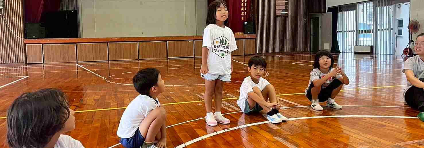 気象状況が悪く、予定されていたスノーケル体験をエイサー練習に変更しました。小学1年生~中学3年生までの全員で踊ります。10月の運動会に向けて仕上げていきます。