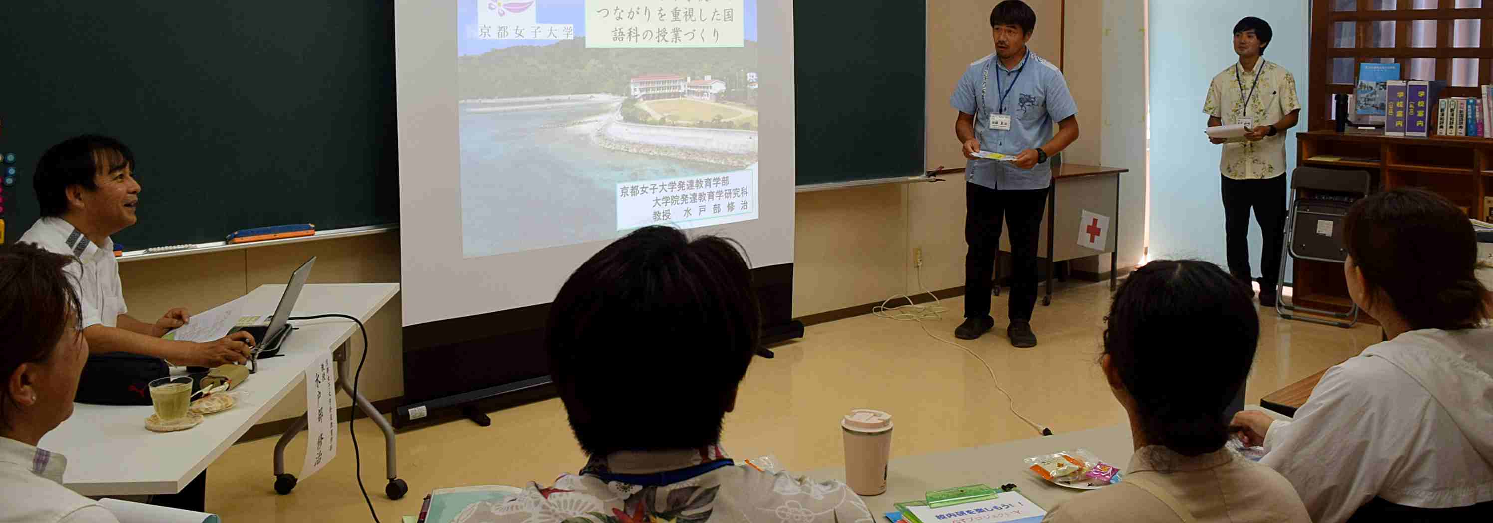 京都女子大学の水戸部教授をお招きして、国語科を中心にした授業づくりについて研修会を行いました。近隣校からも参加し充実した勉強会となりました。離島にお越しくださった水戸部先生に感謝いたします。