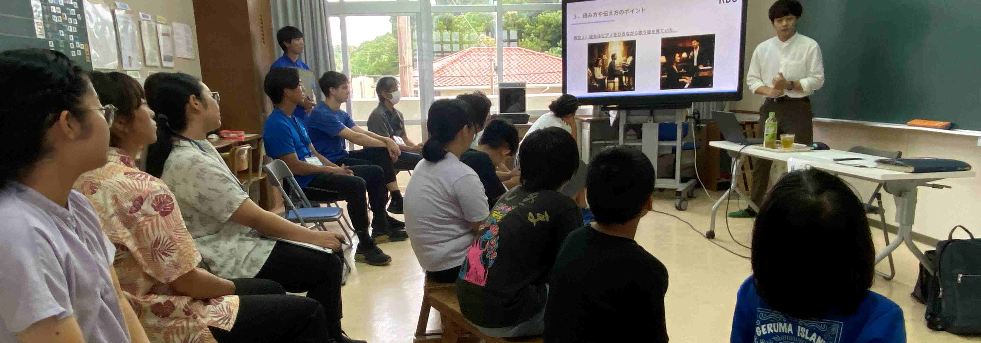今日は琉球放送局からアナウンサーの鎌田宏夢さんをお招きして、アナウンス教室がありました。ユーモアたっぷりの講話を通して、相手に伝わるように話すときのポイントを教わり素敵な時間となりました。