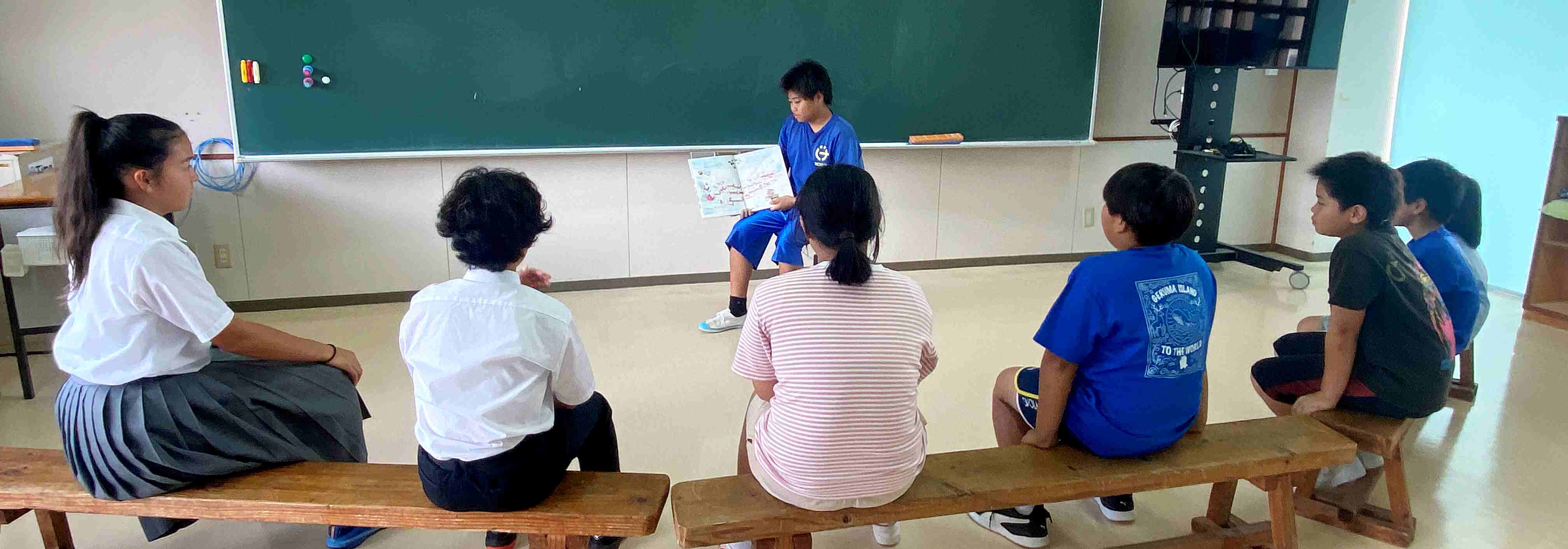 慶留間区の中村さんを講師にお招きして、平和学習を行いました。80年前に米軍が上陸した時の貴重な映像を見ながら、島の歴史を知り平和について考える時間となりました。