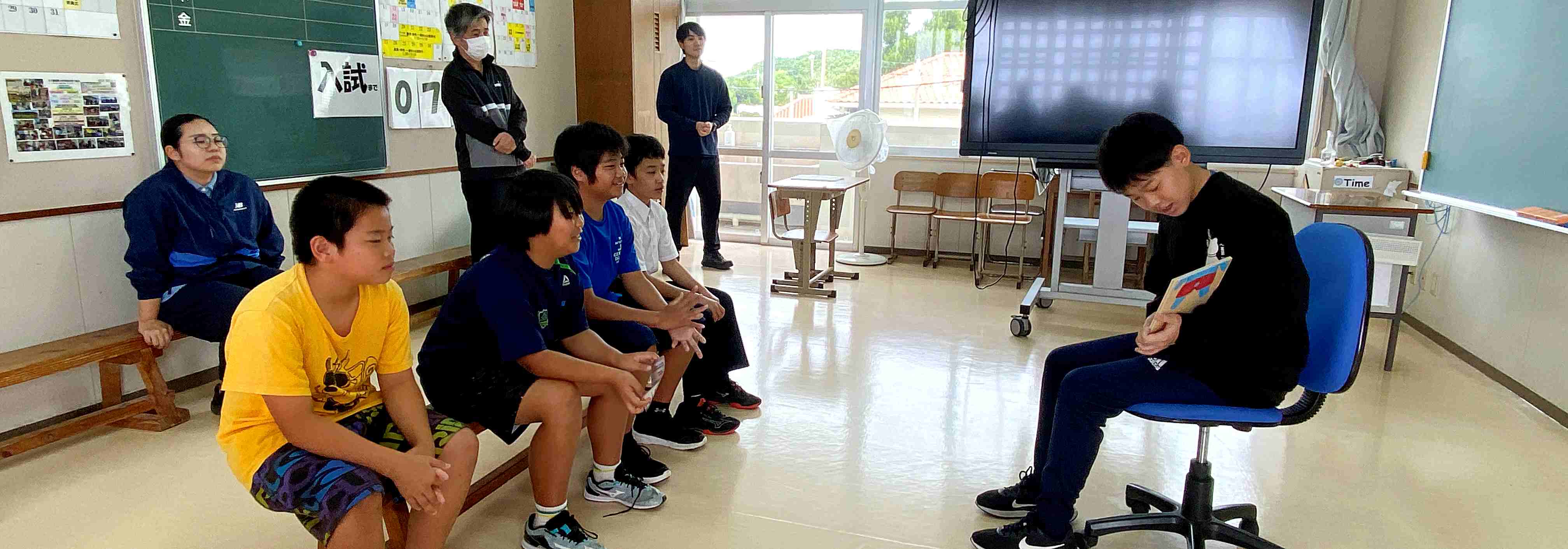 中学部では、座間味村の3校がオンラインでつながりディベートの合同学習を行いました。離れた場所にいても画面を通して互いの意見を交わし合う学習ができました。